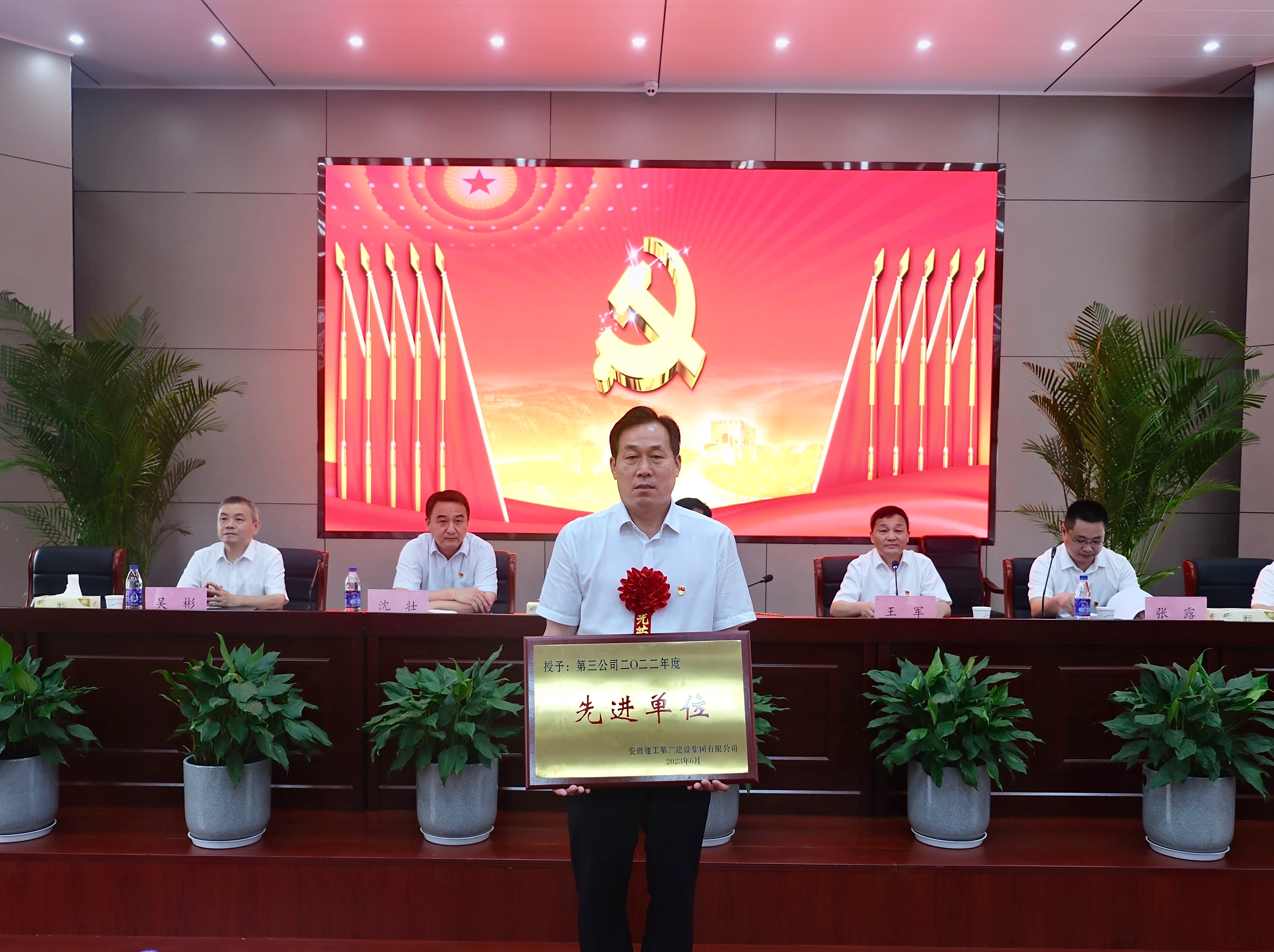 為慶祝中國共產(chǎn)黨成立102周年,深入開展學(xué)習(xí)貫徹習(xí)近平新時代中國特色社會主義思想主題教育,落實黨的二十大精神,6月29日上午,建工二建集團(tuán)在新會議室召開慶祝建黨102周年表彰暨黨課報告會。公司在肥領(lǐng)導(dǎo)、機(jī)關(guān)部門負(fù)責(zé)人及黨員、所屬單位領(lǐng)導(dǎo)班子成員、群團(tuán)工作人員、公司黨委2022年度“兩優(yōu)一先”受表彰集體及受表彰人員代表、公司2022年度“先進(jìn)集體”“先進(jìn)個人”受表彰集體及受表彰人員代表,公司團(tuán)委2022年度“兩優(yōu)一紅”受表彰集體及受表彰人員代表,部分預(yù)備黨員參會。黨委副書記、總經(jīng)理葛輝出席會議并作黨課報告。會議由黨委副書記、工會主席王軍主持。