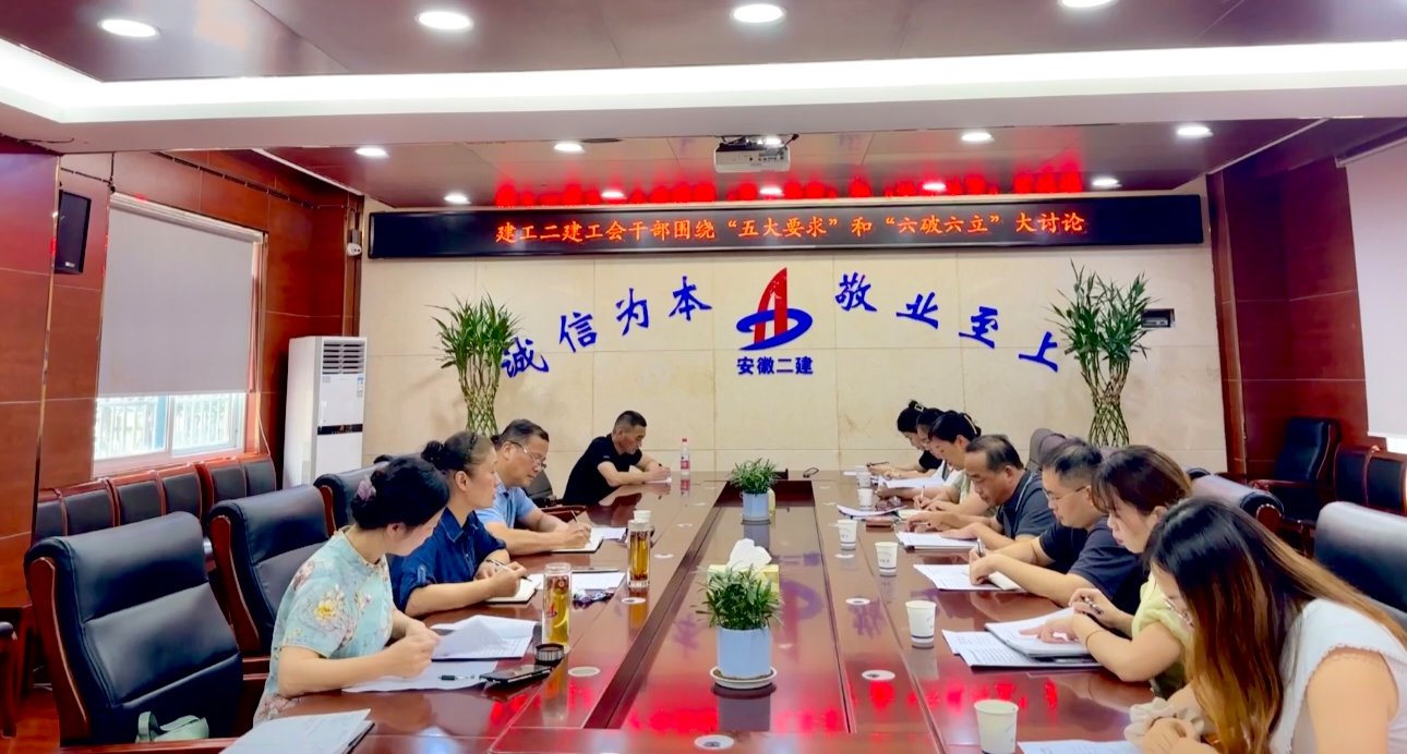 8月18日下午,建工二建工會干部圍繞“思想大解放、環(huán)境大優(yōu)化、能力大提升、作風(fēng)大轉(zhuǎn)變、任務(wù)大落實(shí)”和“六破六立”開展大討論。工會副主席、女工委主任王俊主持會議,公司工會工作人員、所屬各單位工會(副)主席、綜合辦工會干事參會。
