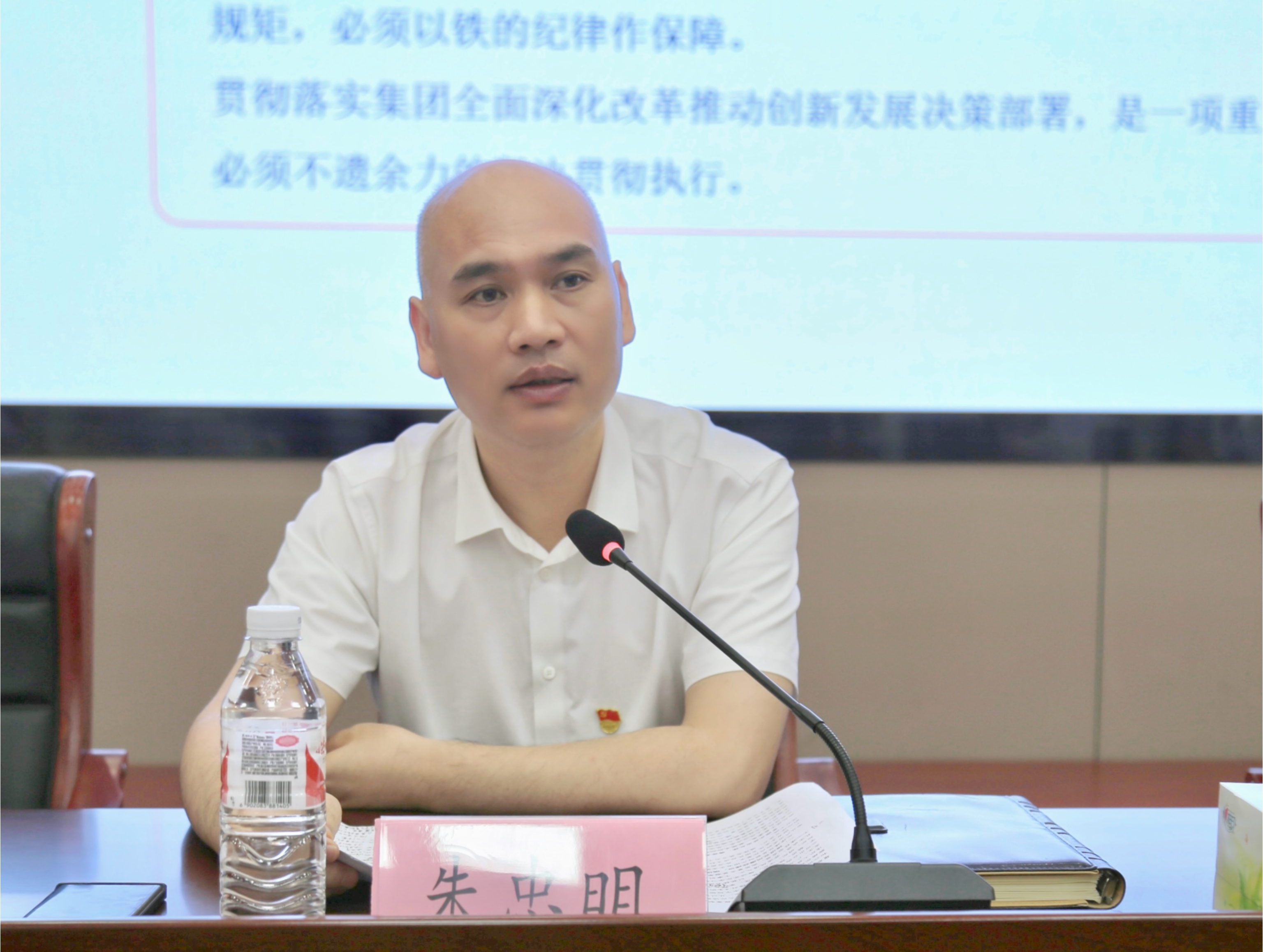 朱忠明作題為《遵規(guī)守紀(jì) 嚴(yán)于律己 以身作則 營造風(fēng)清氣正、干事創(chuàng)業(yè)的良好氛圍》專題黨課,從四個方面展開:一是扎實開展黨紀(jì)學(xué)習(xí)教育,強化黨員干部紀(jì)律意識。二是紀(jì)律建設(shè)要融入企業(yè)治理,推進黨風(fēng)廉政建設(shè)。三是認清形勢任務(wù),營造風(fēng)清氣正的干事氛圍。四是堅持真抓實干,扎實做好年度各項重點工作。
