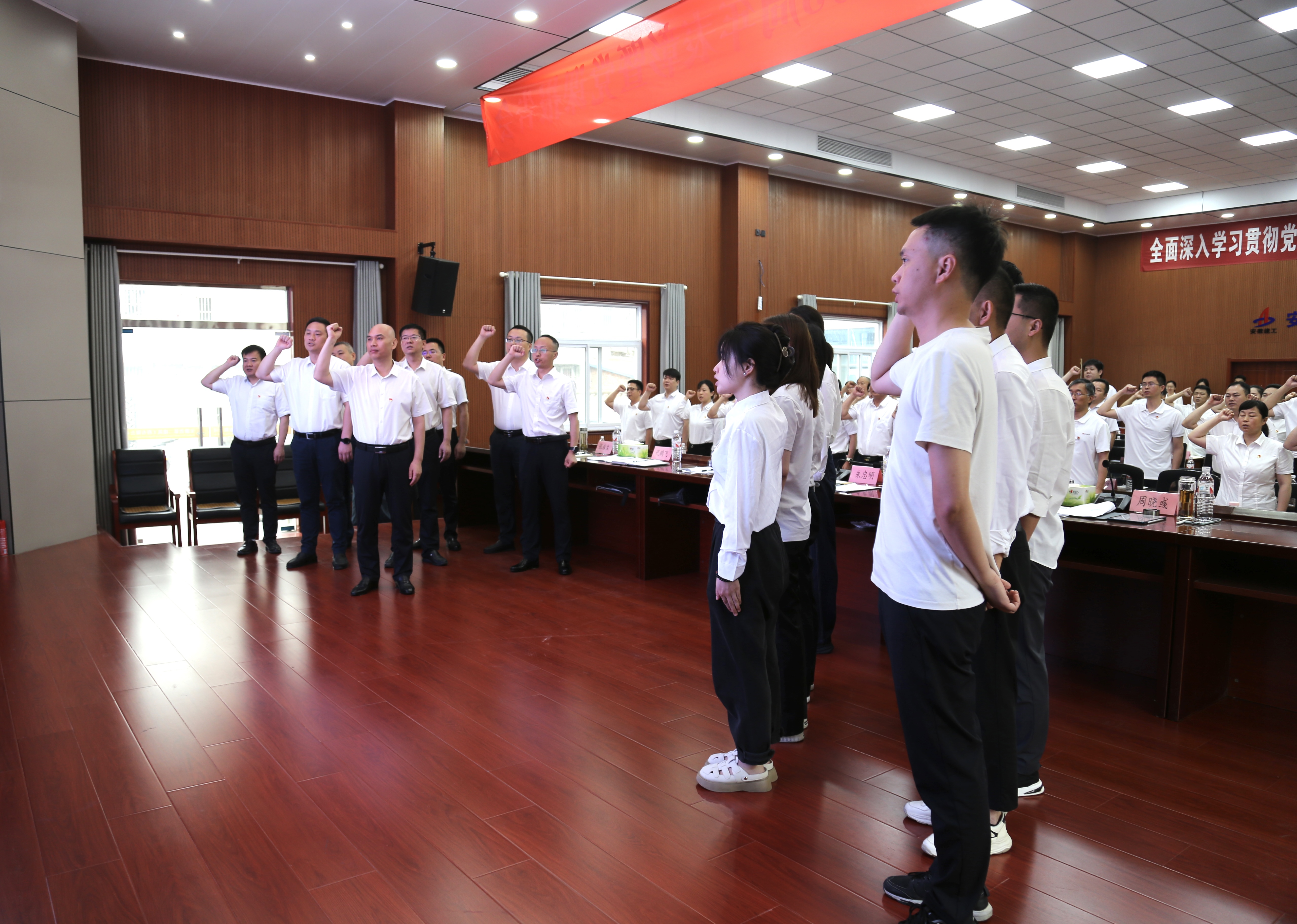 大會在莊嚴(yán)雄壯的國歌聲中拉開帷幕。黨委副書記、總經(jīng)理陶良敬宣讀2023年度公司黨委“兩優(yōu)一先”表彰文件,總工程師吳彬宣讀2023年度公司團委“兩優(yōu)一紅”表彰文件。公司領(lǐng)導(dǎo)班子成員為受表彰的集體和個人頒發(fā)獎牌、榮譽證書,5名受表彰代表作交流發(fā)言。隨后,在朱忠明的帶領(lǐng)下,新黨員進行入黨宣誓,全體黨員重溫入黨誓詞。