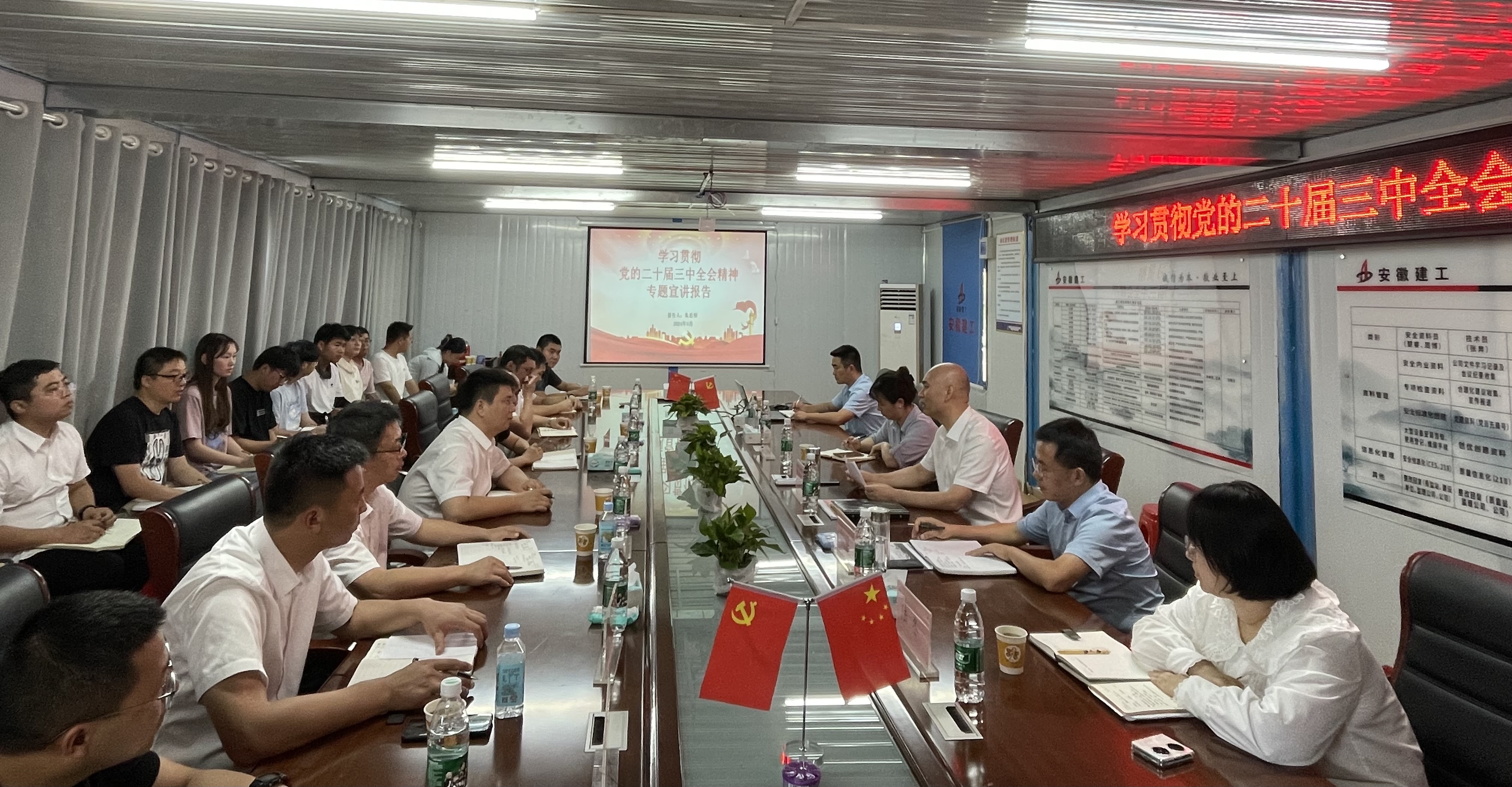 下午,朱忠明在宿徐園區(qū)城鎮(zhèn)一體化A、B地塊項(xiàng)目會議室集中宣講黨的二十屆三中全會精神,并結(jié)合公司當(dāng)前實(shí)際情況,深入分析解讀公司三年發(fā)展目標(biāo)和五項(xiàng)年度重點(diǎn)任務(wù)。