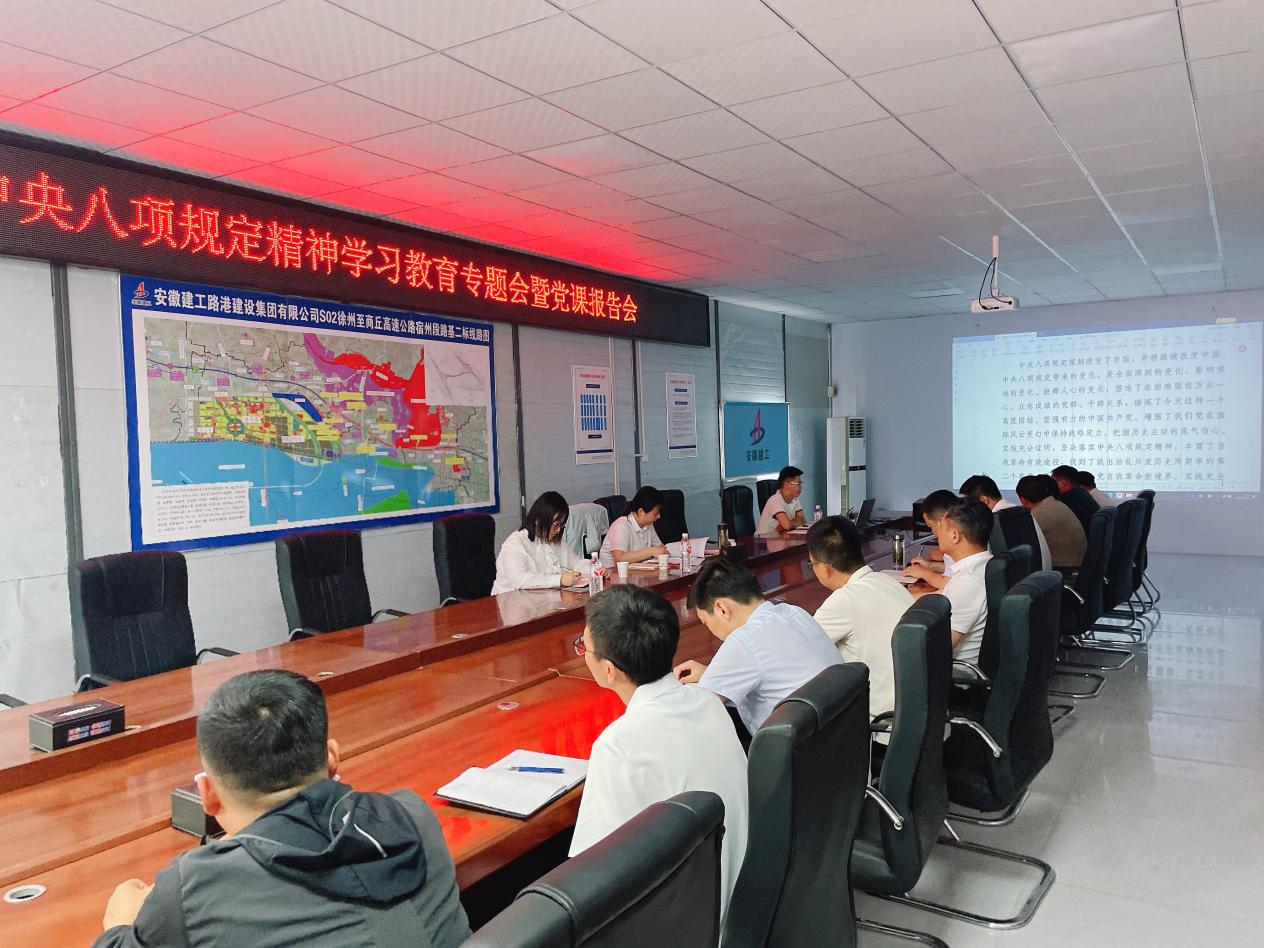 近日,宿州投發(fā)機關黨支部書記徐晶晶一行先后赴S02徐商高速路基二標項目部、S02徐商高速路基一標二分部項目部,開展深入貫徹中央八項規(guī)定精神學習教育專題會暨黨課報告會。機關黨支部書記徐晶晶講授黨課,黨支部委員陸冬領學相關內容,項目部全體職工參加會議。