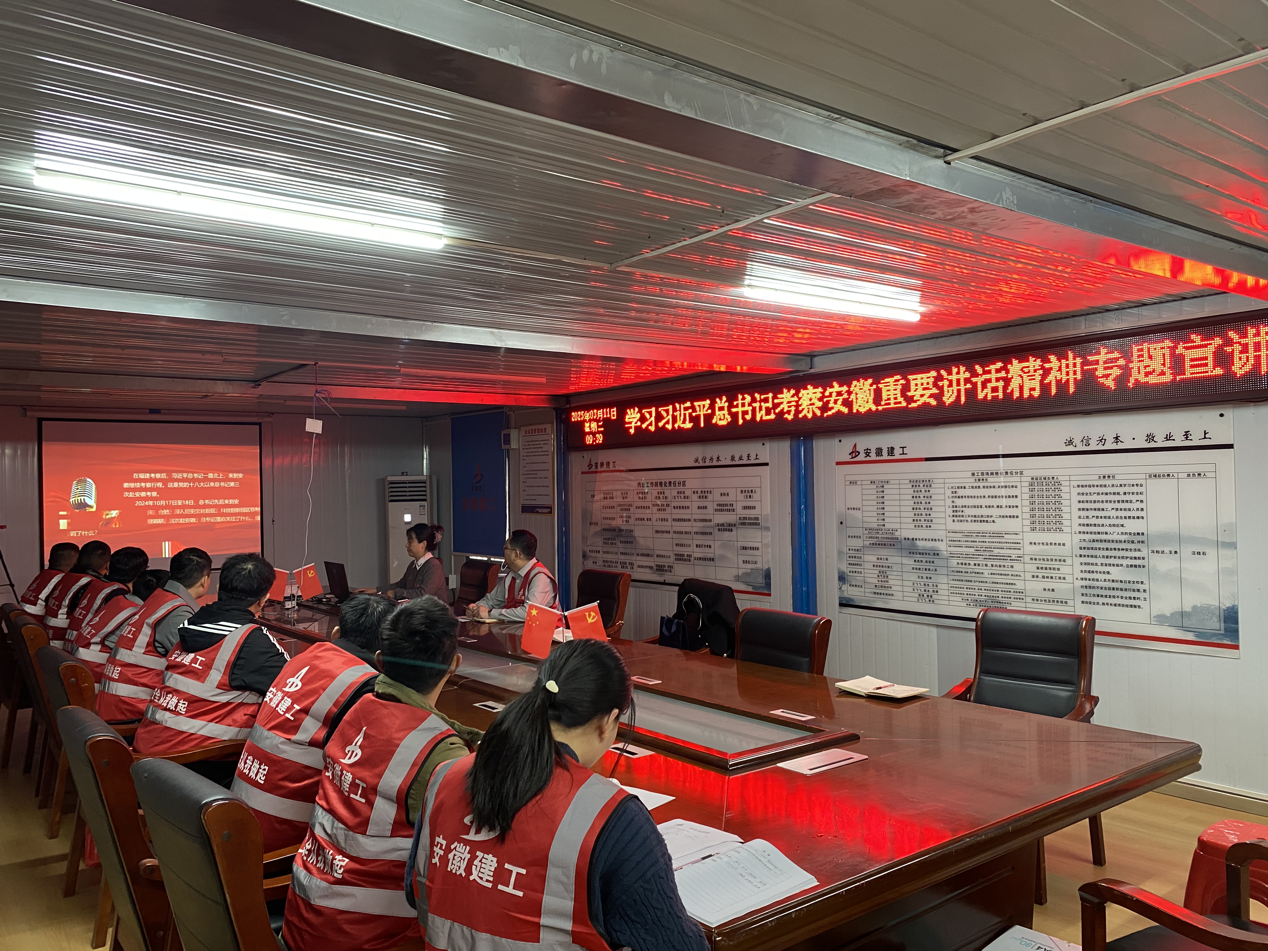 徐晶晶圍繞習近平總書記考察安徽重要講話精神,詳細解讀了觀古巷、看新城、謀未來等內容。會議強調要堅持黨建引領,充分發(fā)揮基層黨支部的戰(zhàn)斗堡壘作用和黨員的先鋒模范作用。隨后項目經理汪桂石傳達學習了安徽建工集團三屆二次職代會暨2025年工作會議精神及公司二屆一次職代會精神。