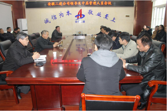 1月14日下午,安徽二建公司召開領導及中層管理人員會議,宣布安徽建工集團控股有限公司關于安徽二建公司領導班子調整的決定。建工控股黨委工作部部長、建工股份黨委副書記徐文聯(lián)出席會議,公司領導班子、機關部門負責人、分公司黨政主要領導參會。