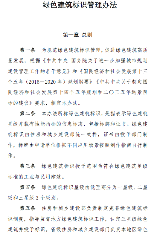 近日,住房和城鄉(xiāng)建設(shè)部印發(fā)《綠色建筑標(biāo)識(shí)管理辦法》(以下簡(jiǎn)稱《辦法》),要求各地住房和城鄉(xiāng)建設(shè)主管部門結(jié)合實(shí)際認(rèn)真貫徹執(zhí)行。