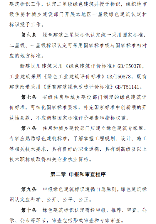 《辦法》要求,綠色建筑三星級(jí)標(biāo)識(shí)認(rèn)定統(tǒng)一采用國(guó)家標(biāo)準(zhǔn),二星級(jí)、一星級(jí)標(biāo)識(shí)認(rèn)定可采用國(guó)家標(biāo)準(zhǔn)或與國(guó)家標(biāo)準(zhǔn)應(yīng)的地方標(biāo)準(zhǔn)。