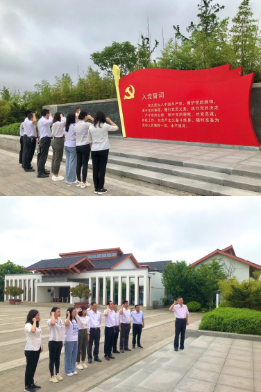 隨后,大家沿著紅色足跡來到了沈浩同志先進事跡陳列館,現(xiàn)場認真聆聽了沈浩同志的先進事跡,在他擔(dān)任村領(lǐng)導(dǎo)的六年中,他深入群眾、拉近距離、調(diào)研走訪、摸清村情,用心融入到小崗村。在為小崗村脫貧致富忙碌奔波中,三過家門而不入,吸引大學(xué)生進村創(chuàng)業(yè)、招商引資辦工業(yè)、開發(fā)旅游促三產(chǎn)等一系列措施,使得小崗村村民生活水平顯著提高,文化生活豐富多彩,精神面貌煥然一新。在學(xué)習(xí)沈浩同志先進事跡時,大家無不為沈浩扎根小崗、克己奉公、干事創(chuàng)業(yè)的崇高品質(zhì)所感動,更加明白了為什么他能成為小崗村鄉(xiāng)親們?nèi)伟聪录t手印留下的好干部、人民好公仆。在陳列館門前,黨員面對鮮紅的黨旗,重溫入黨誓詞,莊嚴宣誓。