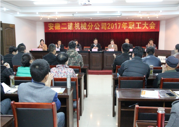 立足新起點(diǎn),實(shí)現(xiàn)新跨越!323日上午,安徽二建機(jī)械分公司在原公司三樓會(huì)議室隆重召開(kāi)2017年職工大會(huì)。公司黨委書(shū)記劉賢奇、紀(jì)委書(shū)記仇多維、女工主任王俊及機(jī)械分公司領(lǐng)導(dǎo)班子成員與職工40多人參加了會(huì)議。