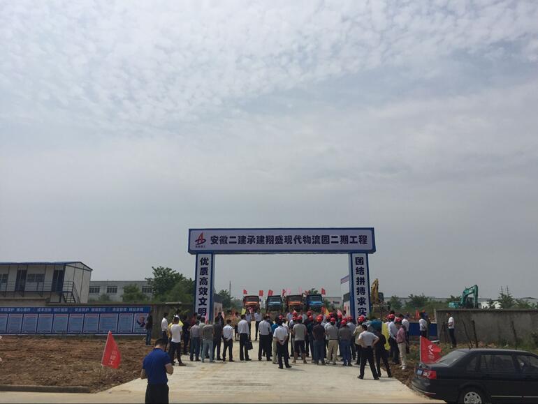 5月18日上午三分公司承建的安徽翔盛現(xiàn)代物流園項目舉辦開工儀式,該工程位于六安裕安區(qū)安徽翔盛現(xiàn)代物流園,共兩棟廠房和一棟綜合辦公樓,總建筑面積37315平方米,總造價約5300萬。公司副總經(jīng)理劉國良、分公司經(jīng)理葉和永,安徽翔盛物流管理服務(wù)公司總經(jīng)理楊剛等人參加。