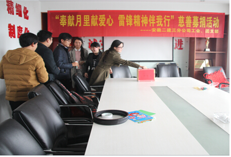 3月為全國學(xué)雷鋒月,三分公司團(tuán)支部、工會舉辦“奉獻(xiàn)月里獻(xiàn)愛心 雷鋒精神伴我行”活動,以愛心募捐方式為貧困學(xué)生獻(xiàn)上自己的一份微薄之力。通過一個多星期的信息收集整理,確定了此次愛心資助對象劉雅芹同學(xué)。通過走訪得知,劉雅芹現(xiàn)就讀大一,家里三口人擠在兩間破瓦屋內(nèi)。奶奶年邁多病,父親單身,劉雅芹為其養(yǎng)女,家中僅靠父親一人打零工來維持奶奶的醫(yī)藥費(fèi)和劉雅芹的學(xué)費(fèi)及一家人的日常生活。此次活動得到了公司領(lǐng)導(dǎo)、同事的大力支持,大家在公司會議室舉行了募捐儀式,同時在分公司所屬項(xiàng)目部開展募捐活動,大家踴躍參與,獻(xiàn)上自己的一份愛心,一共為劉雅芹同學(xué)募捐學(xué)費(fèi)4000元。