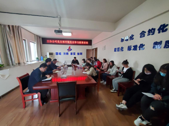 三分公司黨支部開展黨史學習教育活動,分公司機關(guān)全體人員參加,活動由支部書記陳習武主持。首先,陳習武帶領(lǐng)大家學習了二建黨發(fā)【2021】13號文《安徽二建公司黨委關(guān)于開展黨史學習教育的工作方案》,并就分公司黨支部的黨史學習教育活動做了詳細安排部署,要求全體黨員干部把思想和行動統(tǒng)一到集團、公司黨委的決策部署上來,高標準、高質(zhì)量完成黨史學習教育各項任務,努力做到學史明理、學史增信、學史崇德、學史力行,以優(yōu)異成績迎接建黨100周年。隨后,陳習武帶領(lǐng)大家上了一堂生動的黨史課。“從上海石庫門到嘉興南湖,一艘小小紅船承載著人民的重托、民族的希望,越過急流險灘,穿過驚濤駭浪,成為領(lǐng)航中國行穩(wěn)致遠的巍巍巨輪?!?。通過視頻和講解相結(jié)合,為大家敘述了從中國共產(chǎn)黨成立到建立新中國,28年間,黨召開了一次次重要會議。這些會議作出的決策,指引了中國革命的方向,推動了歷史進程,具有里程碑意義。大家紛紛表示,將從黨史中汲取智慧和力量,堅定信仰信念,進一步提高黨性修養(yǎng),不忘初心,以實際行動發(fā)揮好黨員干部的模范帶頭作用,積極投入到干事創(chuàng)業(yè)中去,為分公司的發(fā)展添磚加瓦。