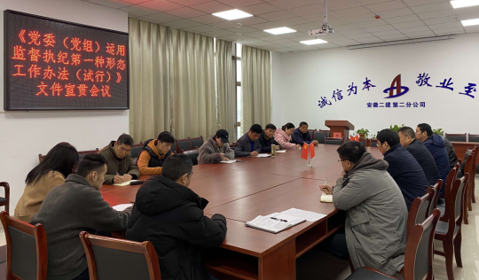 近期,為認真落實全面從嚴治黨主體責任和監(jiān)督責任,踐行“四種形態(tài)”,強化“第一種形態(tài)”運用。安徽二建公司所屬各單位組織學習了《黨委(黨組)運用監(jiān)督執(zhí)紀第一種形態(tài)工作辦法(試行)》。