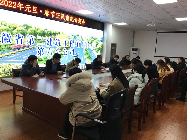 2022年元旦、春節(jié)將至,為進一步強化正風(fēng)肅紀(jì),確保 “兩節(jié)”期間風(fēng)清氣正,12月31日下午,第六分公司黨支部召開正風(fēng)肅紀(jì)專題會議,認真學(xué)習(xí)貫徹中共中央辦公廳、國務(wù)院辦公廳和中央紀(jì)委印發(fā)《關(guān)于做好2022年元旦春節(jié)期間正風(fēng)肅紀(jì)工作的通知》,對做好元旦春節(jié)期間有關(guān)工作提出明確要求,馳而不息糾“四風(fēng)”、樹新風(fēng),積極營造歡樂祥和、文明節(jié)儉、風(fēng)清氣正的節(jié)日氛圍。