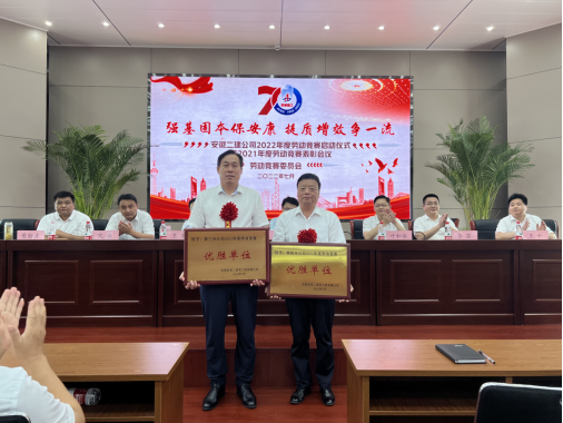7月7日上午,安徽二建公司舉行了“強(qiáng)基固本保安康 提質(zhì)增效爭一流”2022年勞動競賽啟動儀式暨2021年度勞動競賽表彰會議。公司領(lǐng)導(dǎo)出席會議,勞動競賽委員會成員、所屬各單位主要領(lǐng)導(dǎo)、分管生產(chǎn)及質(zhì)量副經(jīng)理、工會主席、工程管理科、安全科全體人員、參賽項(xiàng)目經(jīng)理代表等共80余人參會。會議由黨委副書記、工會主席王軍主持。