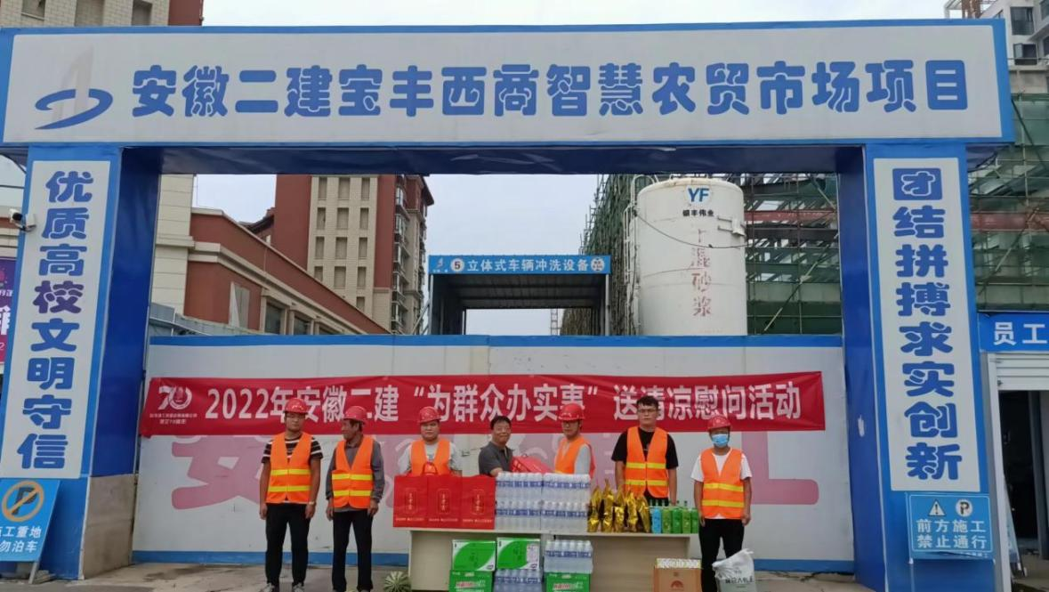 董建民一行來(lái)到項(xiàng)目現(xiàn)場(chǎng),詳細(xì)詢問(wèn)項(xiàng)目情況,親切慰問(wèn)一線職工,為他們帶去了防暑降溫物品,并囑咐項(xiàng)目部嚴(yán)格落實(shí)勞動(dòng)保護(hù)和疫情防控措施,提高安全健康意識(shí),合理調(diào)整工作時(shí)間,防止高溫中暑。