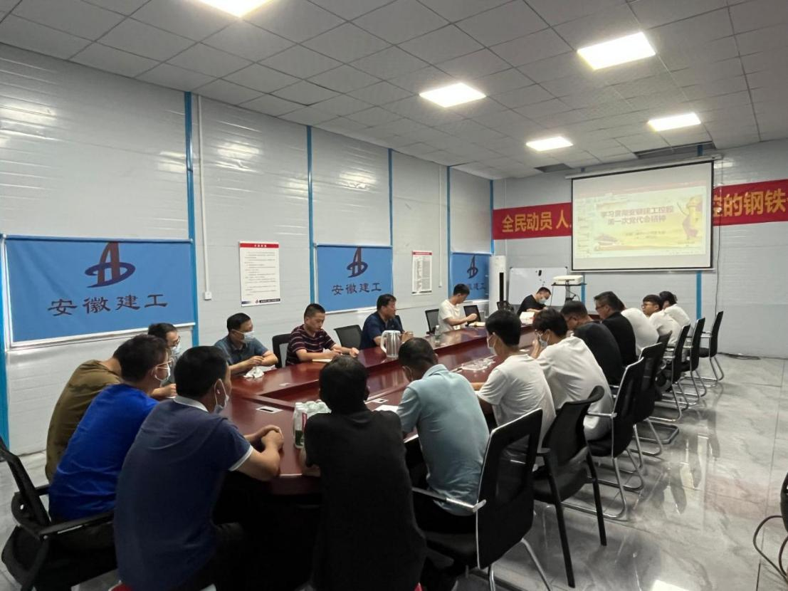 在項(xiàng)目會(huì)議室,董建民宣貫了集團(tuán)第一次黨代會(huì)精神。他指出,當(dāng)前和今后一個(gè)時(shí)期,項(xiàng)目部要把學(xué)習(xí)好、貫徹好、落實(shí)好黨代會(huì)精神作為重要政治任務(wù),切實(shí)把思想和行動(dòng)統(tǒng)一到黨代會(huì)各項(xiàng)部署要求上來(lái),擁護(hù)“兩個(gè)確立”,踐行“兩個(gè)維護(hù)”,舉旗鑄魂興文化,同心共建促共享,為推動(dòng)分公司高質(zhì)量發(fā)展做出更大貢獻(xiàn)。