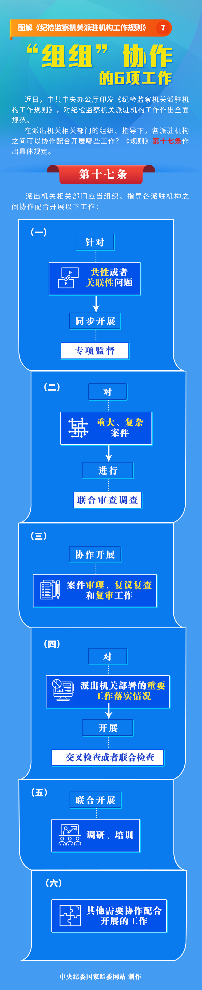 第十七條 派出機關(guān)相關(guān)部門應(yīng)當組織、指導(dǎo)各派駐機構(gòu)之間協(xié)作配合開展以下工作: