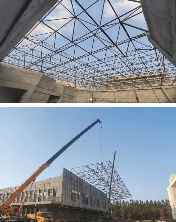 目前,體育中心鋼網(wǎng)架起頭部分已吊裝完成,為下一步順利施工奠定基礎(chǔ)。項目團(tuán)隊將繼續(xù)以高標(biāo)準(zhǔn)、嚴(yán)要求,提高工程質(zhì)量,完成項目建設(shè)目標(biāo)。